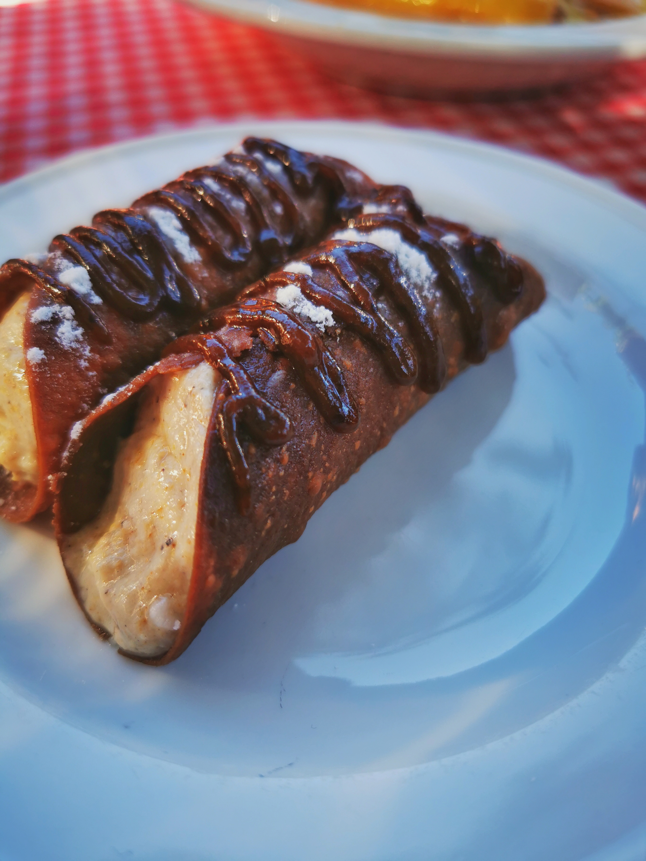 Canoli de campo, relleno de mousse de harina tostada. Un sabor nuevo para mí, ese de la harina tostada, al parecer un ingrediente muy campesino.