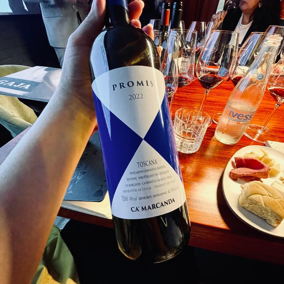 En PROMIS, CA’MARCANDA, IGT TOSCANA 2022, aparece una paleta aromática de frutos azules, notas florales, recuerdos de aromas trufados y de chocolate. En boca tiene peso, es expresivo y largo; aparece la fruta madura sostenida por una acidez elegante. Con el oxígeno se perciben notas de hierbas y pomelo. Los suelos de arcilla y arena, fríos y compactos, parecen marcar su carácter.
