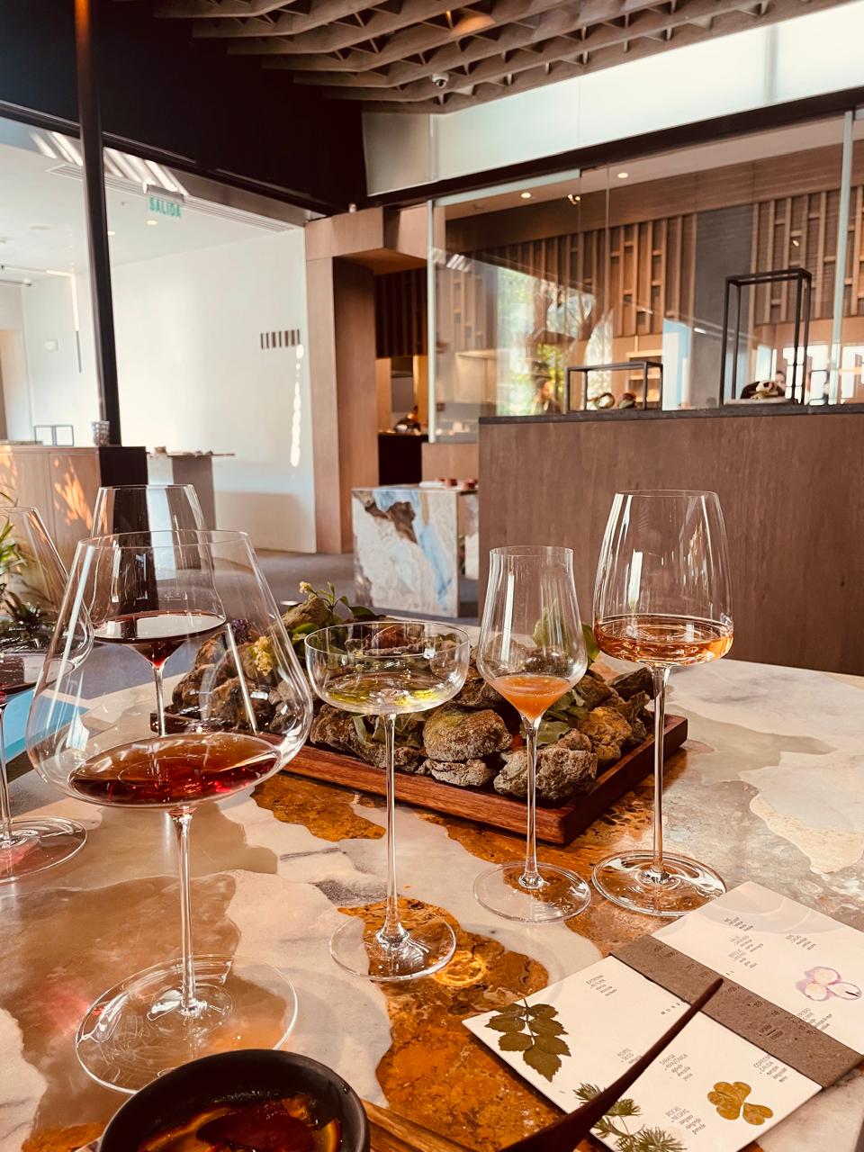 Al entrar al edificio nos trasladan a los espacios del segundo piso, donde Diego Villagrán, encargado del área creativa de bebidas de Masi, lidera la creación del menú líquido, que en los maridajes fue una de las cosas que más disfruté. Diego nos cuenta que han eliminado por completo el azúcar blanca y que ello los ha obligado a buscar opciones para endulzar a base de frutas y distintos tipos de mieles.